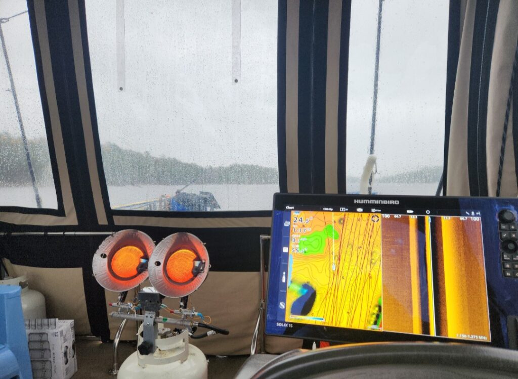 50 Mission Cast has propane heaters and Humminbird fish finder technology.