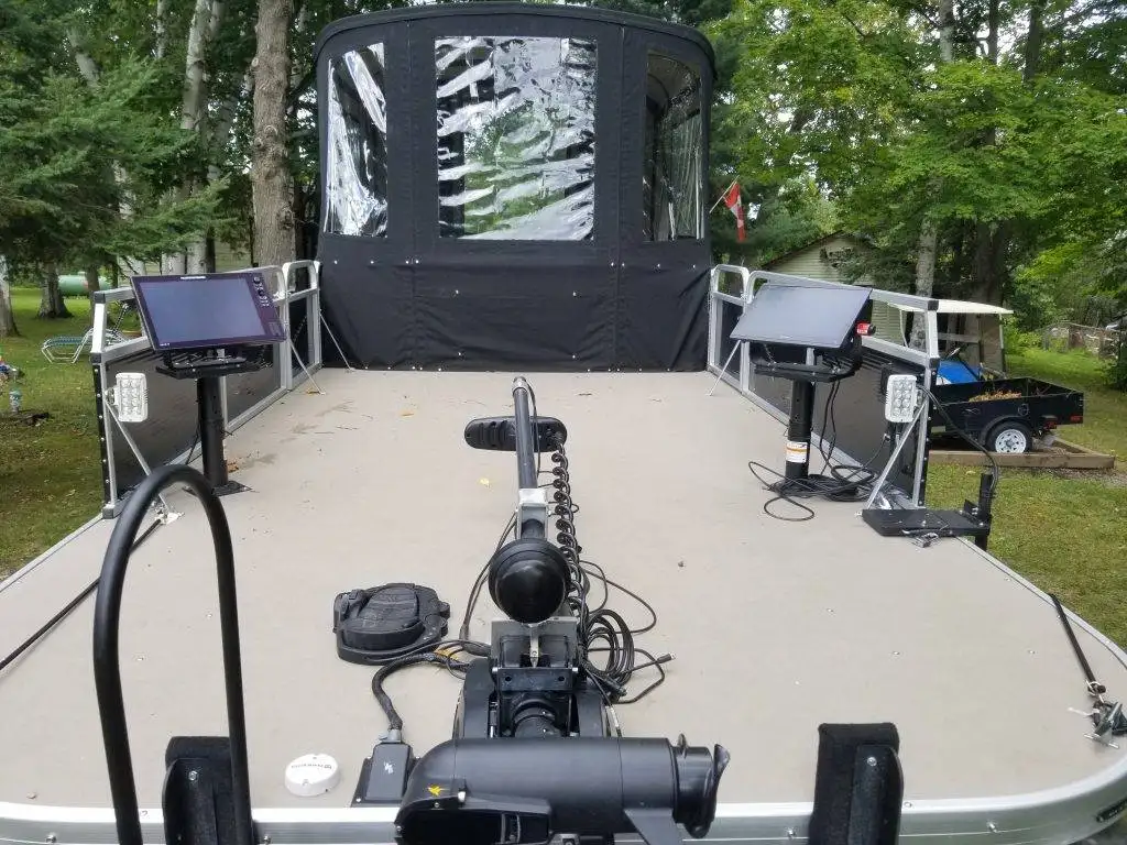 - If you like trolling for Walleye, there is a 10x10 enclosed Bimini to keep you warm, cool and dry during all weather conditions.