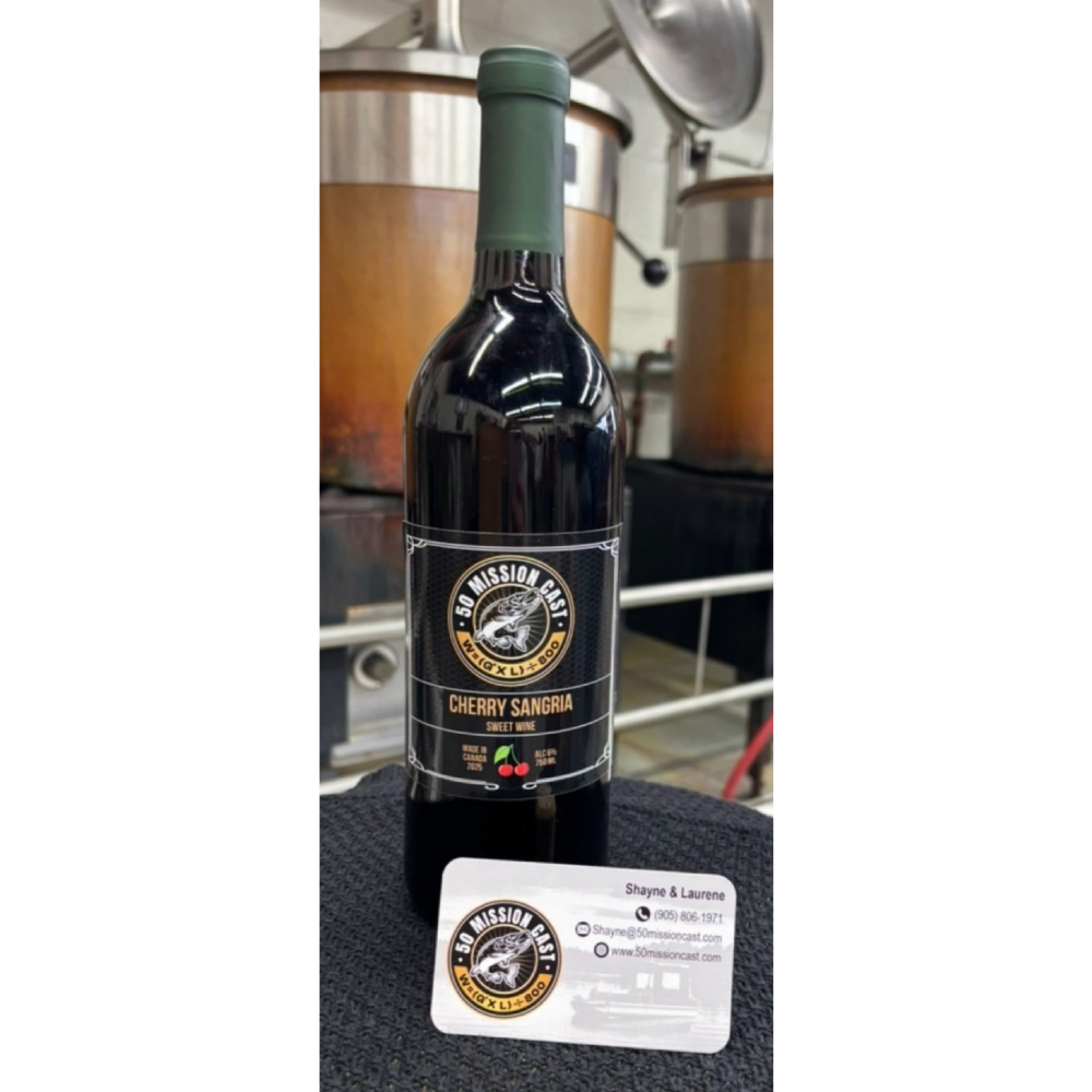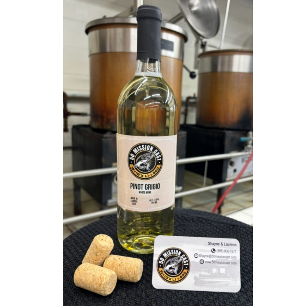 At 50 Mission Cast every guided trip comes with a choice of exclusive booking bonuses to say thank you . 1 case of 50 Mission Cast Beer, smooth, 5.0% lager brewed in Ontario. Crisp, cold, and similar to Molson Canadian – buts it’s ours. Two bottles of 50 Mission Cast Wine *Pinot Grigio 12.5 % * Cherry Sangria 12.5%. Or a 50 Mission Cast merchandise couple.